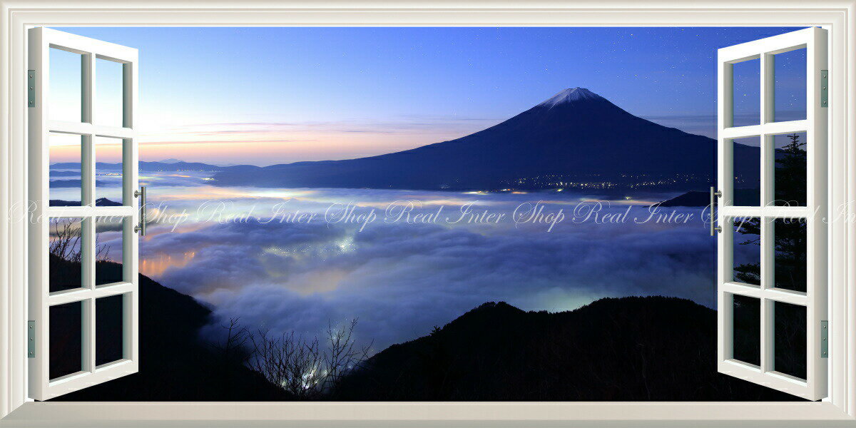 絵画風 壁紙ポスター (はがせるシール式) -窓の景色- -地球の撮り方- 輝く雲海、新道峠からの富士山 星空 夜景 パノラマ 日本の絶景 【窓仕様/トリックアート】 キャラクロ C-ZJP-039MS1 (1152mm×576mm) 建築用壁紙+耐候性塗料 インテリア